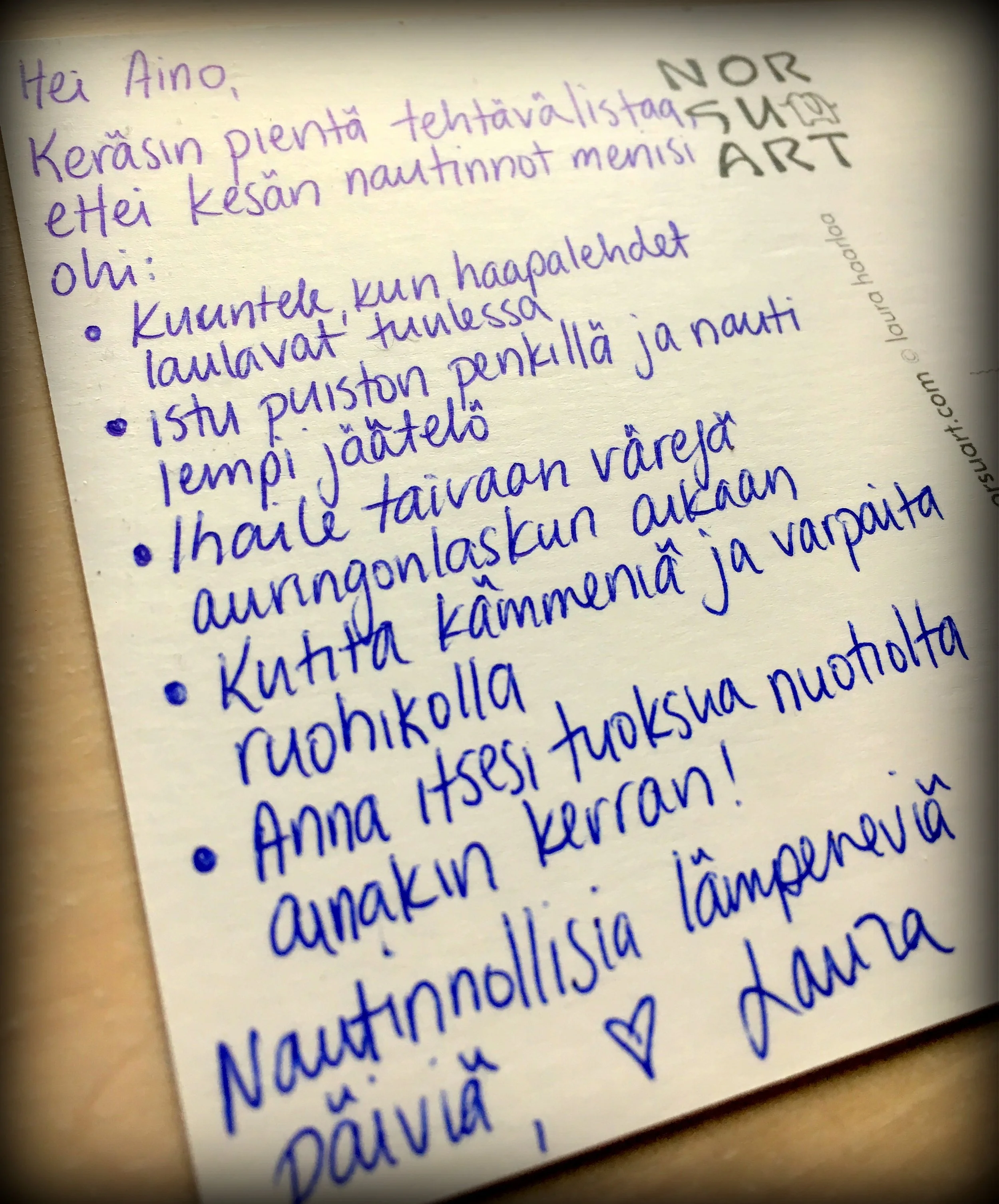 Olisiko kiva saada enemmän kuin laskuja tai mainoksia postissa? Entäs sellainen vanhanaikainen käsinkirjoitettu viesti? Ja jos se vielä kertoo jotain positiivista ja rohkaisevaa?